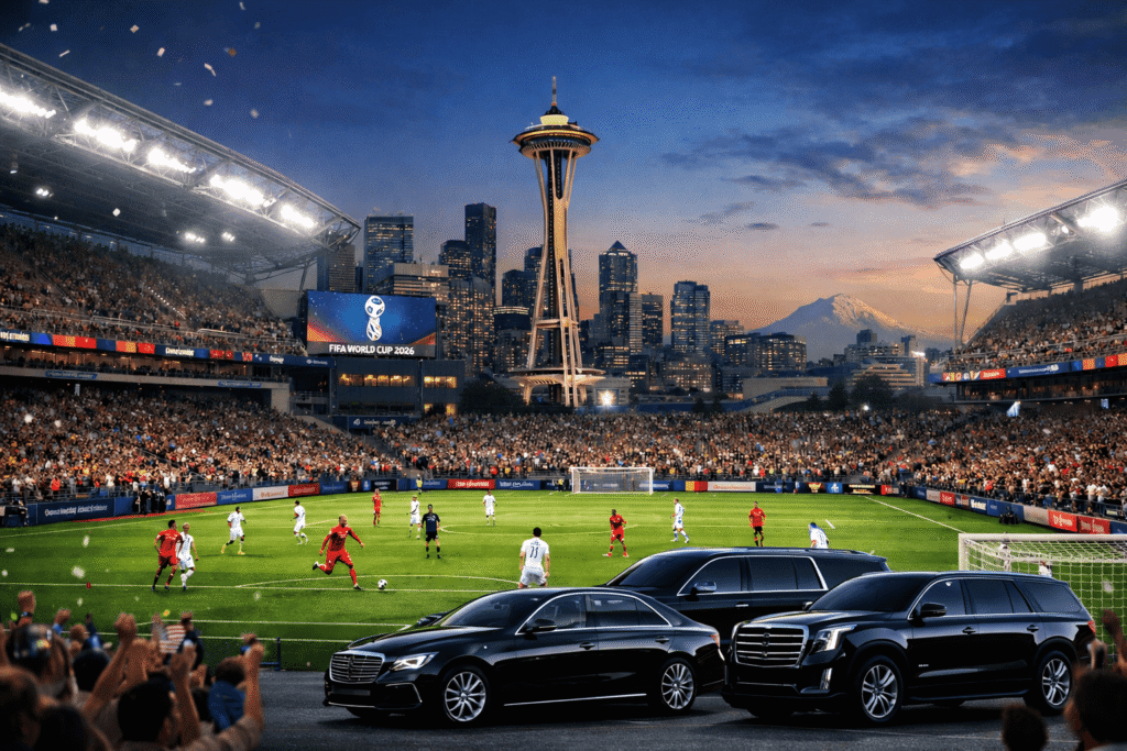 Seattle STS Town Car & Limo Service is proud to offer luxury transportation for FIFA World Cup 2026 fans, teams, VIPs, and corporate guests. Skip traffic, parking, and long waits — arrive at the stadium in comfort and style.